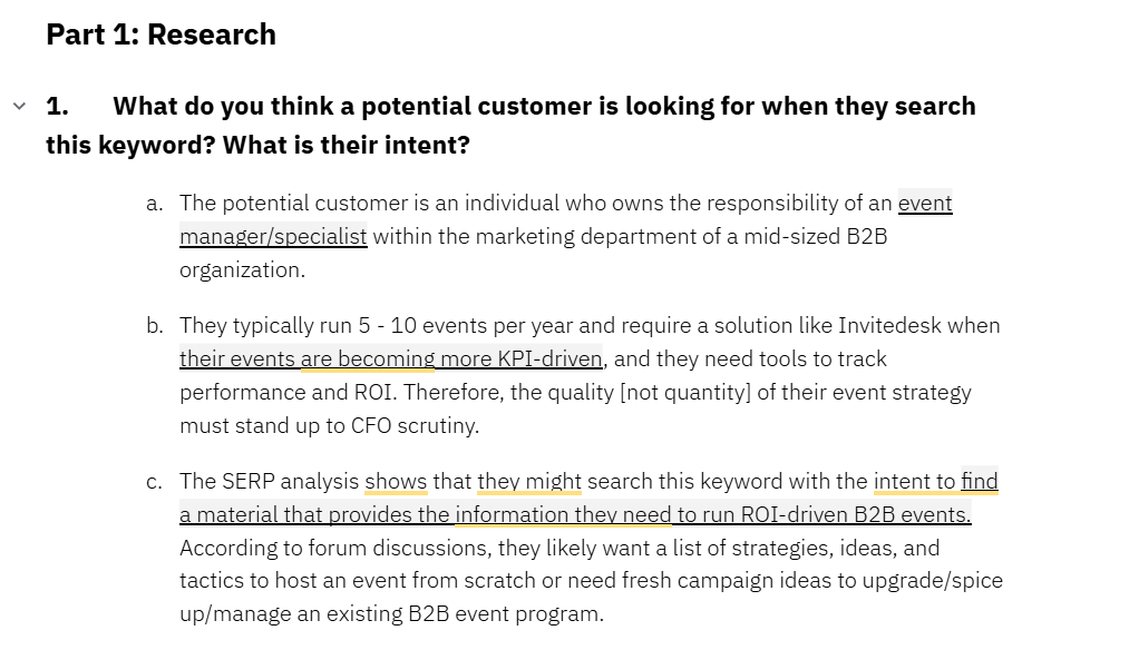“They are struggling to host B2B events that generate justifiable pipelines. Their aim is to find information that helps them set up a B2B marketing event that influences revenue, and learn how to prove and/or maximize the effectiveness of their event marketing strategy.”